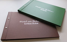 Um bedruckte Seiten perfekt In Szene zu setzten, binden wir diese oder bieten auch qualitativ hochwertige Mappen an. Sehr gut geeignet als Speisekarten.